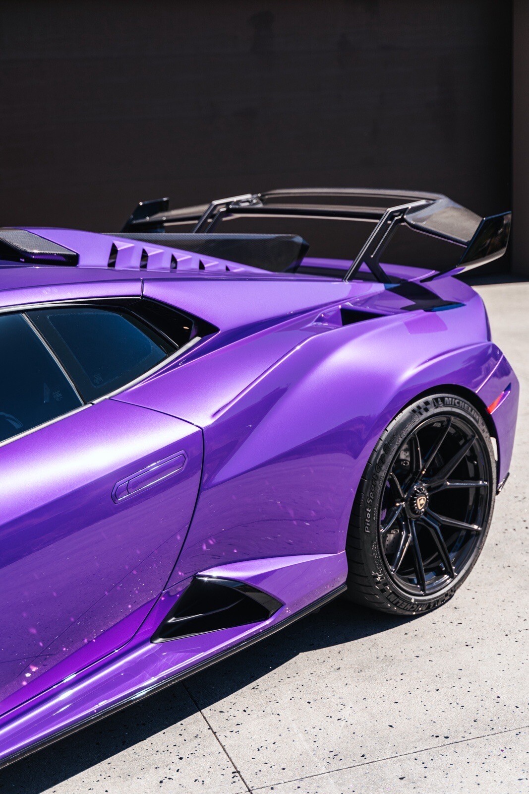Enhance the look and performance of your Lamborghini Huracan STO with this MV Forged Custom Wheels & Tires Package. The package includes four 20-inch forged wheels and matching custom tires, designed to provide an exceptional driving experience. The wheels feature a Lamborghini logo and are constructed with high-quality materials to ensure durability and longevity. The package is perfect for those who want to upgrade their car's appearance and performance without compromising on style and comfort. With its custom design and exceptional quality, this package is a must-have for any Lamborghini enthusiast. Enhance the look and feel of your car with this MV Forged Custom Wheels & Tires Package.