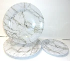 Set of 4 "Marble" Look Lightweight Melamine Dinner Plates + 2 Bonus Salad Plates Description: The listing is for a Set of 4 pieces Melamine 10.5" Dinner Plates by Greenbrier International, all new with tags. You will receive 2 Bonus (free) 8.5" Salad Plates with the purchase. They are suitable for indoor and outdoor use. These dinnerware are made of lightweight material and are break resistant with reasonable use and care. Please ask any questions you may have. Thank you for shopping with us. Measurements: Dinner Plates - 10.5" diameter Salad Plates - 7.5" diameter Care Instructions: They could be dishwasher safe on the top rack, but are not safe for microwave oven. Wash with gentle dish detergent and avoid harsh chemicals such as bleach, alcohol etc Shipped by UPS Ground Seller's Ref: #1360 GD01-07031522