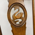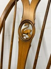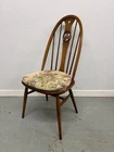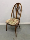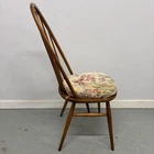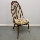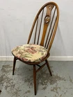 A set of 4 vintage Ercol swan back dining chairs is full of charm and beautifully made, with that instantly recognisable curved backrest and carved swan motif. They come with floral seat pads and are in great condition overall, offering a comfortable and supportive sit while still keeping that classic Ercol silhouette. The wood has a warm, natural tone and the elegant spindle backs give the chairs a light, airy feel—ideal for both modern and traditional spaces. Whether you’re creating a cosy cottage look, adding to an existing Ercol collection, or simply after timeless dining chairs, this set works effortlessly in a kitchen, dining room or breakfast nook. Approx measurements: Height: 100 cm Seat height: 42 cm Depth: 58 cm Width: 45 cm A beautiful, ready-to-use vintage Ercol set that brings quality craftsmanship and a bit of nostalgia to any home. We take great care to provide accurate descriptions, and we encourage you to thoroughly review the accompanying photos for a comprehensive understanding of the item's details. If you have any questions or need additional information, please don't hesitate to reach out to us. 💡 Collection in person is available, or we are happy to work with your own courier. 🚚 Alternatively we can arrange delivery, please select this option when purchasing. If we arrange delivery, it will be organised through a single courier who will offer ground floor delivery therefore it will be necessary to have an able-bodied person available to assist at the delivery location with unloading and moving the item. Delivery times may vary. Our aim is to deliver all items within 14 working days from purchase. However, please note that larger items or multiple pieces may require up to 28 days for delivery. Rest assured, we will keep you updated on delivery if this is selected at checkout.