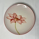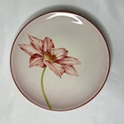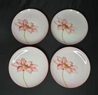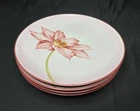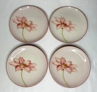 Set of 4 Noritake Colorwave Raspberry 8045 Ceramic Floral Clematis Accent Salad Plates. Made in Indonesia. Approximately 8 3/8” wide. Condition is Used. Please note one plate has a lighter background tint color (red tint is lighter) when compared to the other three. Please see photos for details.