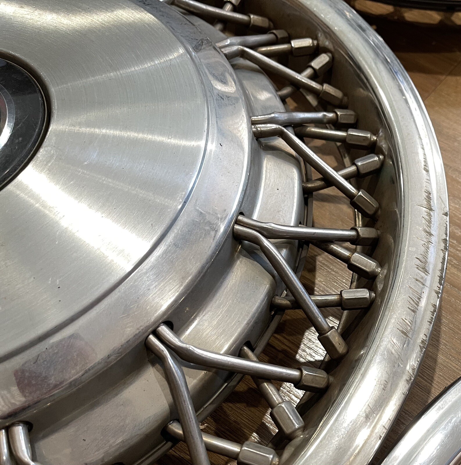 Set of 4 OEM 1993 Buick Roadmaster 15" Wire Spoke Hubcap Wheel Covers. They were on a 1993 Buick Roadmaster. ALSO comes with locking bracket retainers AND locks! Had these for a long time! Overall in great condition, there are some curb scratches and some spokes have dents. Normal wear. The rubber on the back of them isn’t in the greatest shape, probably needs to be replaced. Please SEE photos. These would be great if you did a little restoration on them! Shipping will be based on location. The weight and measurements of the box are in. Please ask any questions you’d like. Enjoy!