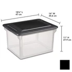 You may also like Lightweigh Rectangle Countertop Plastic Storage Cabinet W/3 Clear Drawers4 Packs 63.12 USD Free shipping Storage Box Plastic Stackable W/ Lid Accessory Toy Organizer Set of 6 20 Qt New 52.05 USD Free shipping 6 Piece Clear Stackable Storage Bins Durable Plastic Containers Set W/ Lids New 40.24 USD Free shipping 6 Pack Storage Bin Utility Tote Containers Stackable Heavy Duty Plastic Black US 82.13 USD Free shipping 4 Pack 3 Drawer Unit Plastic Storage Box Organization Clear Adult Countertop New 63.12 USD Free shipping 32 Qt Stackable Plastic Storage Bins Office Livingroom Bedroom Latching W/ Lids 23.5 USD Free shipping 20 Qt Storage Box Plastic Set of 6 Garage Livingroom Kitchen Bedroom Hinge Lids 52.05 USD Free shipping Keep your office and workspace neat and organized with Sterilite File Box. Customize and label either letter or legal sized hanging folders then file away those important documents keeping them neatly organized, while reducing clutter around the home or office. The tight fit snap lid keeps files dust free and protected, while the indexed top allows for multiple File Boxes to be stacked maximizing vertical storage space. The contoured design provides a comfortable grip surface for easy transporting, when files need to be taken on the go or relocated. Outside Dimensions: 18-1/2" x 14" x 11" Color: Black Ideal solution for keeping receipts, bills, taxes, and important paperwork organized and safely contained Conveniently accommodates either letter- and legal-size file folders Contoured design provides comfortable grip area for easy transporting Indexed cover allows multiple File Boxes to be stacked for efficient use of storage space You may also like Bamboo Shower Caddy Shampoo Conditioner Soap Razors Natural Beige 11"x5"x26" New 57.07 USD Free shipping Solar Motion Sensor Spotlight Duo Outdoor Light Wireless Weather Resistant New 40.35 USD Free shipping Modern Bedside Table Nightstand W/ 3 Drawer Wireless Charging Station & USB Port 67.72 USD Free shipping 7.5 Ft Patio Umbrella UV Protection Crank System Sturdy Frame Modern Design New 43.96 USD Free shipping 32 Qt Stackable Plastic Storage Bins Office Livingroom Bedroom Latching W/ Lids 23.5 USD Free shipping Easy Clean Aluminum Nonstick 8qt Stockpot Dishwasher Safe Oven Safe up to 350°F 40.36 USD Free shipping Heavy Duty Wall Mounted Garage Shelf W/ Tool Organizer Baskets & Hooks New 54.96 USD Free shipping 75ft PVC Drinking Water Hose Reinforced PVC Safety 5/8" Inner Diameter BPA Free 63.92 USD Free shipping Breakfast & Dinner Variety Pail Emergency Food Supply Everyday Meals 4 Gal New 77.39 USD Free shipping 2 In 1 Mesh Rocking Camping Chair Detachable Rockers Foldable Portable Outdoors 77.45 USD Free shipping 48" X 16" X 22" Beige Patio Furniture Cover Storage Bag UV Resistant Polyester 47.24 USD Free shipping Dresser W/ 5 Storage Drawer Organization Closet Freestanding Bedroom Living Room 76.96 USD Free shipping