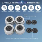 Product Description 2.44" Trailer Axle Dust Cap with Rubber Plugs - 4PCS Fitment Fits Most 2000-3500 Pound Axles Fit standard brake & idler trailer axles for most 4 lug & 5 lug axles with 2.44" diameter cap Package Include 4pcs 2.44 inches trailer axle covers 4pcs extra rubber plug Dimension Reference image size data The trailer axle cap is designed to avoid the trailer axle from dust, preserve the grease, prevent axle corrosion and as decoration Hub grease caps are designed with removable rubber plugs, easy to install and maintain In order to install firmly, the axle dust cap is slightly larger by design. You need to knock it into place using a wood block and hammer or rubber mallet, to prevent denting the cap while installing powered by