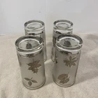 Set Of 4 Vintage Libbey Silver Frosted Leaf Pattern 5.5" Drinking Glasses . Condition is Used. Shipped with USPS Ground Advantage.