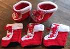 Set of 5 Vintage Handmade Boot Stockings 6” Tall 5” Wide