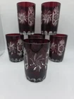 HomeSet of 6 Bohemian Crystal Ruby Red Cut to Clear Tumblers Old Fashioned Glasses
