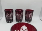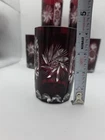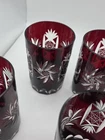 Set of 6 Bohemian Crystal Ruby Red Cut to Clear Tumblers Old Fashioned Glasses