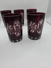 Signed:NoVintage:YesBrand:UnmarkedColor:Ruby RedType:Tumbler Old FashionedPattern:Pinwheel & StarProduction Style:BohemianNumber of Items in Set:6Material:Crystal, GlassShape:RoundFeatures:Set of 6Occasion:All Occasions