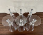 Set Of 6 Hawkes Water Goblet Glass Stems In Pearl Pattern. They measure approximately 7” high and 3.5” in diameter at the top. Two of them have chips on the rim, one of the chip is minor, see photos. The other four have slight hard water marks but overall are in great condition. This item only ships in the continental U.S. O