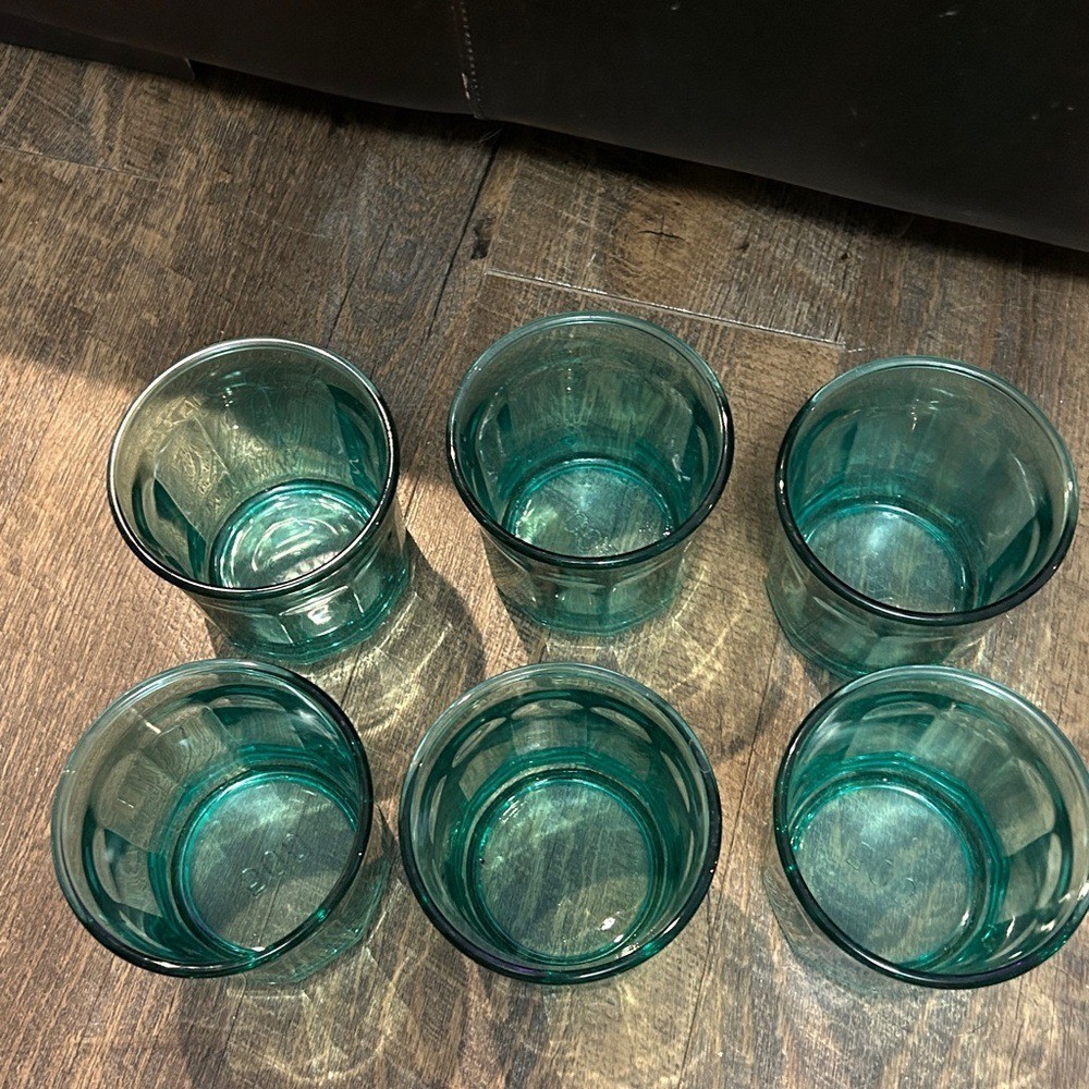 Vtg Set of 6 Luminarc 10 Panel Drinking Glass 500 Aqua/Green Made In France The glasses are 4 in tall and 3.5 in in diameter, with a 13.5 fl oz capacity. Beautiful aqua color. Made in France. Excellent quality. Weight of 6 glasses (without packaging) is 3lb 15oz. No Chips or Cracks