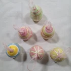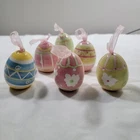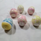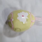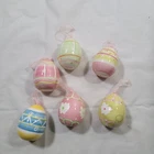 This set includes six small ceramic Easter egg ornaments with a floral pattern in pastel multicolors. Each egg is 2 inches long, 2 inches wide, and 2.5 inches high, weighing 2.2 ounces. The eggs come with ribbon hangings for easy display and are part of the floral-themed ornament collection by the brand LRI. Perfect for decorating baskets or hanging on Easter trees, these delicate ornaments add a festive touch to your holiday decor.