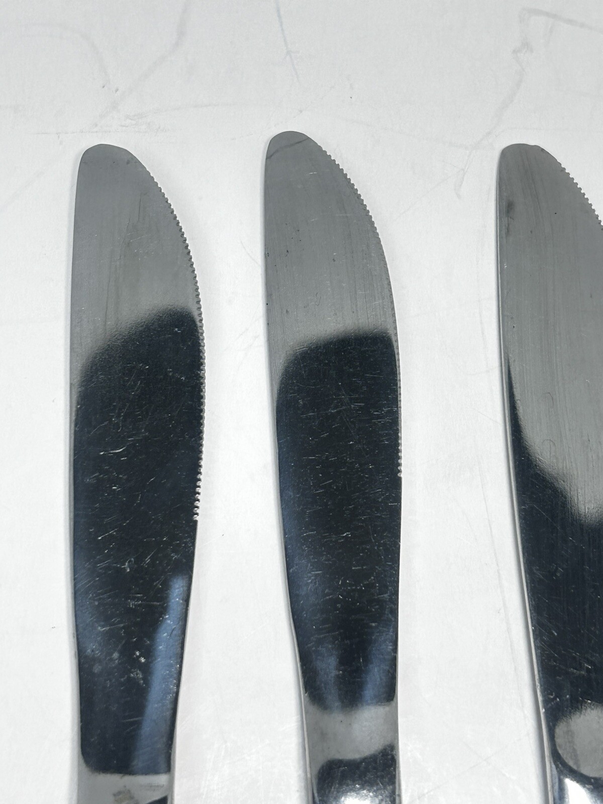 This set includes 6 dinner knives made of stainless steel with a traditional design. The knives feature a floral pattern on the handles, adding a touch of elegance to any dining table. The glossy finish enhances the overall look of the knives, making them suitable for formal dinners or everyday use. These unbranded knives are perfect for adults and would make a stylish addition to any kitchen or dining collection. Each knife is durable and easy to clean, ensuring long-lasting quality and functionality.