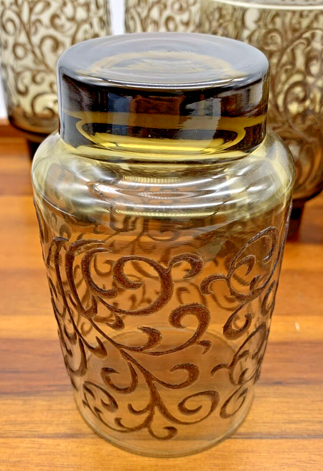 Vintage Anchor Hocking Amber Tumbler Glasses with Rose Etching 3.5 Inches Tall