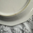 Four dinner plates and four salad/dessert plates There are two cracks visible on the backs however they are flat and smooth There are typical of age utensil marks on some. Not sure if there is a way to buff those out Otherwise still glossy and vibrant Comes from a smoke free home