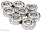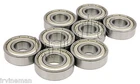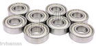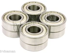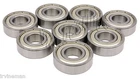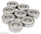 8 Skateboard Bearings 608ZZ Ball Bearings Click on Picture to view Skateboard Ball Bearings 608 ZZ Dimensions: ID=8mm OD=22mm B=7mm Quantity 8 pieces 8 Bearings Packed in a retail box (box is not available).. see picture You are buying a set of 8 Bearings 608ZZ made of Carbon Steel and can rotate up to 34,000 rpm, each bearing has 2 metal shields to protect the bearing from dust or any possible contamination, these are self lubricated bearings (bearings are already greased). Item: 608 ZZ Type: Carbon Steel Deep groove ball bearings Closures: Metal Shielded Quantity: 8 Bearings 608Z Bearing Size: 8x22x7 mm 608ZZ Applications: Skateboards, Roller Blade, Inline Skating, scooter and Rollerblade Other wrong Spellings for bearings: bering, beiring, biering, baering, bairing, berings, beirings, bierings, baerings and bairings Pack#sk8zz