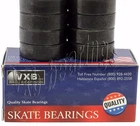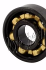 Set of 8 Skateboard Black Bearings with Bronze Cage and white Seals 8mm x 22mm x 7mm/Metric Set of Skateboard Black Bearings, 8 Deep Groove Radial Ball Bearings, bearings are black and have Bronze Cage that would make them faster, bearings have 2 Removable white Seals, Bearings are made of Chrome Steel, each bearing has 2 Removable white Seals to protect the bearing from dust or any possible contamination, also bearings are pre-lubricated with oil. Item: 608-2RS Ball Bearings Type: Deep groove ball bearings Color: Black Closures: 2 Removable white Seals Cage: BRONZE(less friction=higher speeds) Dimensions: 8mm x 22mm x 7mm/Metric ID (inner diameter)/Bore: 8mm OD (outer diameter): 22mm Width/Height/thickness: 7mm Size: 8x22x7 mm Pack#608B-2RS-BRONZE-WHITE Quantity: 8 Bearings Pack#608B-2RS-BRONZE-WHITE