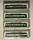Set of Four (4) Con-Cor N Scale Burlington Northern Passengers cars, new in their original boxes. One (1) #0001-04001H - 85 ft Coach Car One (1) #0001-04011H - 85 ft Pullman Car One (1) #0001-04021H - 85 ft RPO/Baggage Car One (1) #0001-04041H - 85 ft Observation Car
