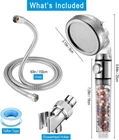 High Pressure Handheld Shower Head with Filter, Shower Head Kits with Hose and Bracket, Hard Water Softener Water Purifying Filtered Showerheads with Filter Beads Style Modern Shape Round Material Plastics Finish Type Brushed About this item THE SHOWERHEAD KIT - This high pressure handheld shower head comes with everything you need to upgrade your showerhead - shower sprayer, 5ft shower hose, showerhead holder and Teflon tape. HIGH PRESSURE - The laser drilled nozzle makes the outlet holes smaller and denser to increase the speed of the water flow, and thereby to increase the water pressure. In the meanwhile, it saves up to 30% water. HIGHLY RECOMMENDED FOR AREAS WITH LOW WATER PRESSURE, or people who love showering with pressurized water. 3 TYPES OF FUNCTIONAL FILTRATION BEADS - The filtration beads in 3 colors provide multi-layer filtration for tap water. It removes impurities and chlorine and helps greatly soften hard water. This filtered showerhead helps hair loss, dry scalp, itchy skin and dandruff. HIGHLY RECOMMENDED FOR HARD WATER AREAS! 3 MODES OF SPRAY - This handheld shower head comes with 3 modes of spray -Rainfall/ Massage/Jetting to accommodate your comfort. Plus it is with an on/off switch at the handle for easy opening and closing the water flow anytime during shower even with your eyes closed! EASY INSTALLATION - Connects to any standard shower fittings in minutes. Fits any standard shower, including wall-mount, dual spray, rainfall and hand-held showers.
