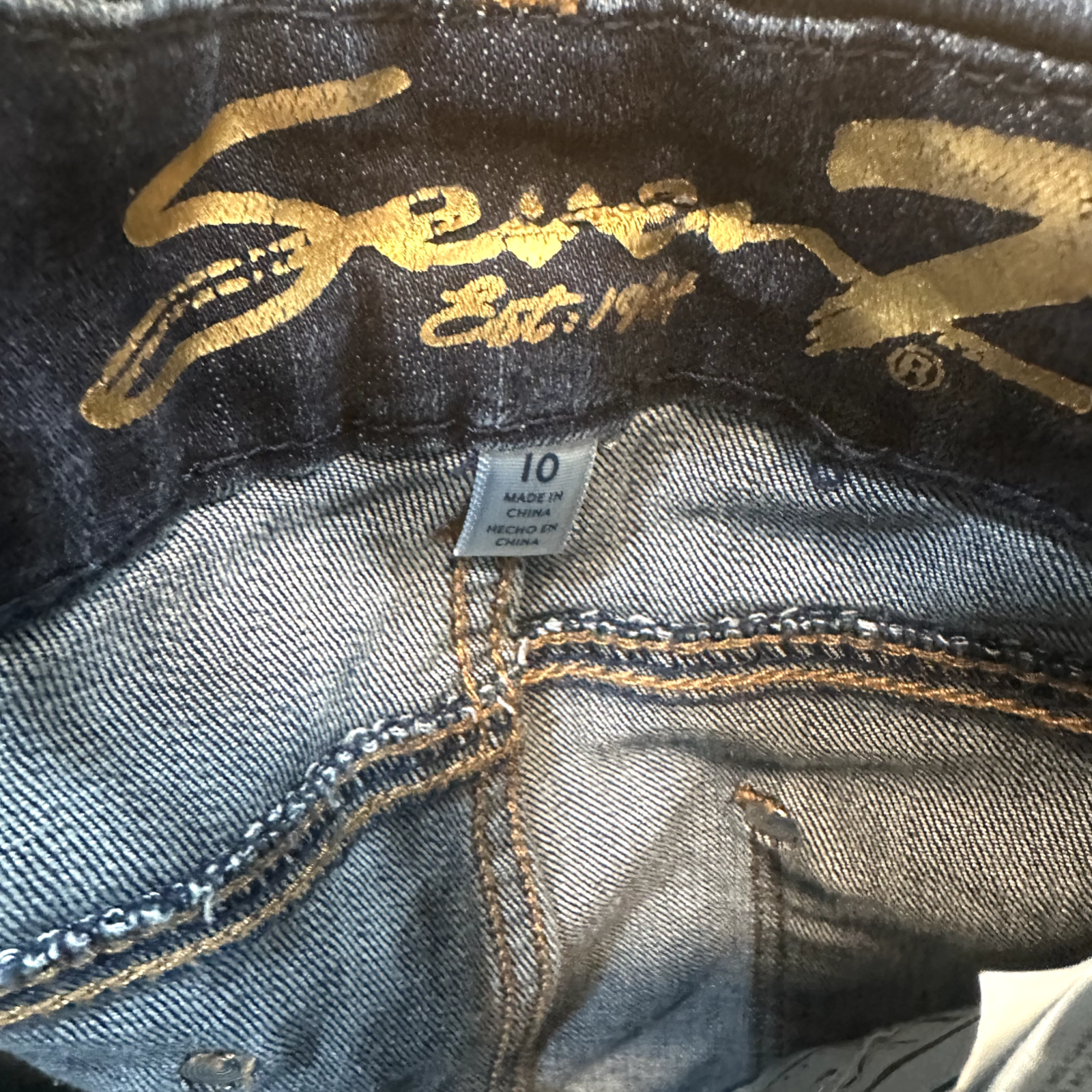 The Seven7 Tummyless Skinny Jeans are high-rise women's jeans in a size 10, made from a denim fabric with a medium wash. These jeans feature a 5-pocket design, a slimming and shaping fit, and offer comfort and stretch for easy wear. The closure options include a zip and button, with accents like buttons and a logo. The tummyless design and skinny fit make them flattering and stylish, perfect for all seasons and versatile styling options.