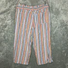 Good Pre Owned condition. Please see photos for details. SUPER FAST SHIPPING!!! We ship next business day! If you aren't happy with your purchase we offer 30 day FREE returns. No questions asked! Seven7 Women Colorful Striped Linen Blend Belted Wide Leg Crop High Rise Pant 12
