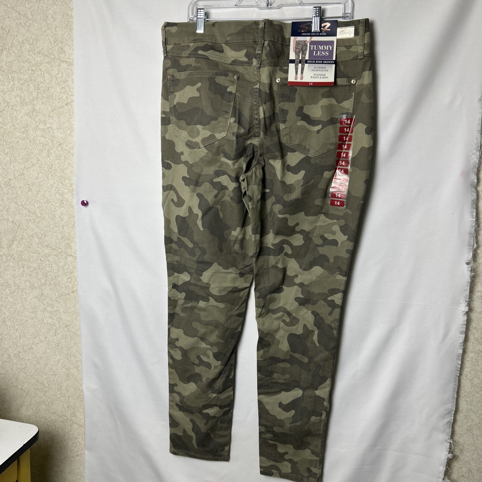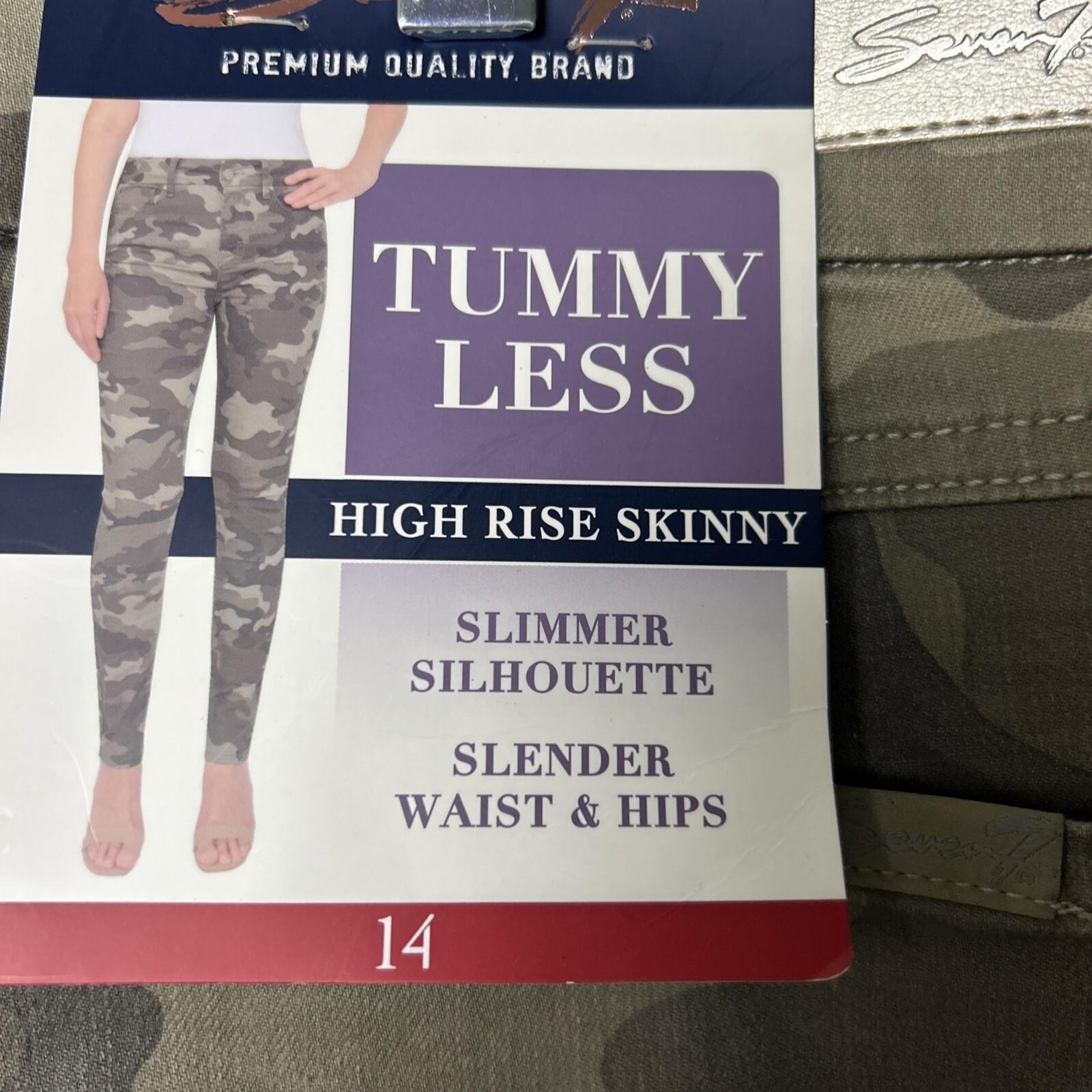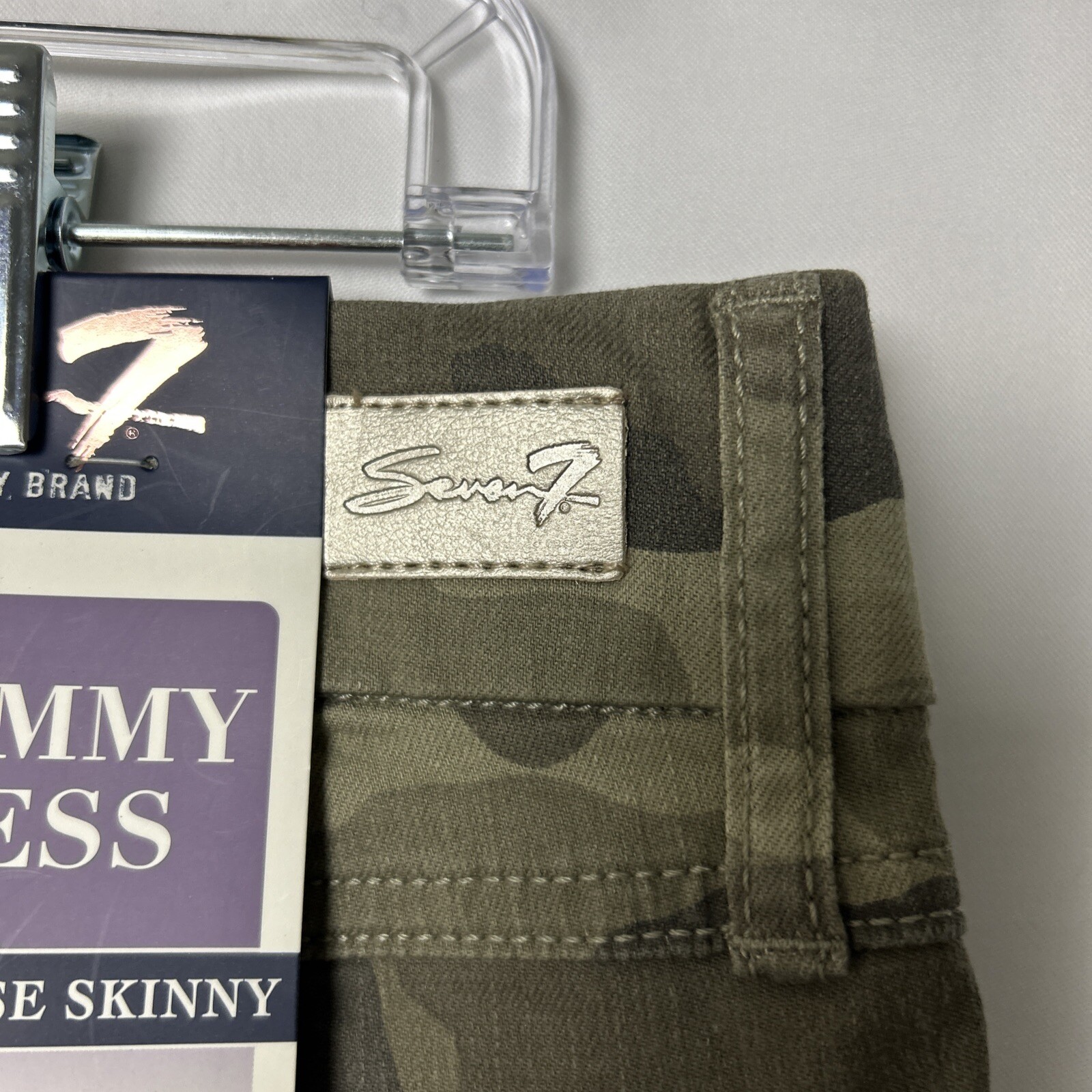 Elevate your fashion game with these stylish Seven7 jeans in a green camouflage pattern. These high-rise skinny jeans are made from a comfortable cotton blend with stretch technology, making them perfect for everyday wear. The 5-pocket design and zip closure add functional elements to this modern piece, while the machine-washable garment care ensures easy maintenance. These jeans are perfect for women who want to look great without sacrificing comfort. The high-rise waistband provides a slimming effect, while the easy-care fabric allows you to focus on your day-to-day activities. Whether you're running errands or going out with friends, these jeans will keep you looking stylish and feeling comfortable.