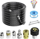 Product Description Sewer Jetter Kit 100FT for Pressure Washer 5800PSI Drain Cleaner Hose With 1/4 Inch Female NPT Button & Nose Rotating Sewer Jet Nozzle Pressure Washer quick connect Set 【Professional Sewer Jetting Kit Includes】 1× sewer jetter hose,1×button nose sewer jet nozzle,1×Mushroom Nose Nozzle,1×Rotating Nozzle,1×M22 female to 1/4’’ female NPT coupler(M22-14),1×1/4’’ quick connect plug(Female),1×1/4’’ quick connect plug(Male),1×waterproof tape, 2×spanners, 1×box of pearl corsage pin,1×instructions manual. 【High Quality 5800PSI Cleaner Hose】 sewer dredge hose are compatible with many air and electric pressure washers up to 5800 PSI.The hose is composed of 4 layers, the first layer is a PVC shell, the second layer is a fiber protection, the third layer is a steel wire braid, and the last layer is a PE inner tube.Therefore, the hose has excellent heat resistance, oil resistance, wear resistance, ozone resistance, pressure resistance, durability, explosion-proof and other characteristics. 【3 Efficient Sewer Jetter Nozzles】The set comes with 3 high efficiency sewer nozzles.Mushroom Nose Nozzle:One 0° rear nozzle can remove the blockage in the corner. Three 33° rear nozzles flush loose debris from the front nozzles.Button Nose Nozzle:One 0° rear nozzle for removing blockages from blocked pipes. Three 33° rear nozzles flush loose debris from the front nozzles. Rotating Nozzle:Three counter-rotating sprayers shoot at the blocked pipe. 【Quick Connect Plug And Female Metric M22-1/4 Inch Female NPT Fitting】Quick Connect Plug used in a lot of situations where high pressure connections are frequently assembled or disassembled.Ideal for quick exchange of pressure washer outlet, sewer jetter hose, guns and nozzles.It makes a solid connection with quick coupler each time.Pressure washer coupler convert metric M22 14mm female NPT thread to 1/4" Female NPT.And we have male and female fittings to make the hose fit more machines. 【Multifunctional Hose Set】High-pressure cleaning hoses can be used to clean cars, motorcycles, floors, Windows, driveways, roofs, siding, sinks, toilets, outdoor, indoor, etc.The piseve sewer spray kit can meet all your needs.We add a variety of common and needed accessories to facilitate your daily use, so the set is ideal for family purchases.Thank you for choosing . During transportation, the outer box may be squeezed, but it will not affect the use of the hose. About Us We are a reputable seller with many years of experience selling on eBay. Our goal is to provide high-quality products and excellent customer service. Shipping Items will be shipped within 1-3 business days when we received payment. (Orders are not processed on weekends & holidays) Tracking information will be sent once item is shipped. Delivery time depends on destination and other factors Item is shipped to ebay address. Leaving correct address can minimize delay. For international shipping and shipping to Guam, Hawaii and Alaska, Please contact us before placing the order. International buyers please note: Import duties, taxes and charges are not included in the item price or shipping charges. These charges are buyer’s responsibility. We will try our best to reduce the risk of the custom duties. Local pick-up is unavailable at the moment. Contact Us We reply any email messages within 1 business / working days(off-duty at weekend). If you do not get a response from us, then please check your junk or spam mailbox. Our Business hours: Mon-Fri 9:00-18:00, UTC/GMT +8 hours. Please contact us either by clicking "contact seller" in the "purchase history" section or simply click "ask a question" at the bottom of this page. If you are unsatisfied with our item or service, please contact us before leaving any feedback. We are committed to resolve all issues in a friendly and satisfactory manner.