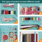 【Large Capacity Sewing Storage】Overall dimension: 13 x 4.5 x 10.5 inches (L x W x H), it comes with 8 sheets/ 14 pages of compartment for storing your sewing needles, scissors, measuring tape, beads, markers, fabrics, yarn, crayons, needles and more. 【Roomy Storage Bag】With clear PVC pockets and dividers which allow you to have quick access and glance. A small see-through front pocket for some small accessories or prepaid IC cards. 【Multi-function Craft Tote】This bag offers 5 types of pockets for your demands to sewing tools, craft tools, art tools, brushes, makeup tools, or any other item you would like to secure and organize. 【Premium Materials】The craft storage tote is made from 800D high-density polyester with a vivid pattern, which is stylish and durable for years of usage. 【Travel Storage Bag】Two top handles are long enough that you can put them over your shoulder as a shoulder bag or tote bag. You can take it on the go and make the trip easier. (Official Micklyn Le Feuvre Product)