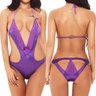 Sexy Women Lingerie One Piece Halter Babydoll Mini Bodysuit Sleepwear Underwear Lace Tumble Dry Low Material: Lace and Mesh. Soft and comfortable to wear Mini Teddy lingerie for women Sexy polka dot lace bodysuit lingerie features halter neck with chain linked design, unlined sheer lace bodice, hook and eye closure, and low back Women chemise lingerie, lace choker features halter v neck, front cut-out design, and floral lace patchwork with sheer mesh Occasion: Sleepwear, Nightwear. Perfect for Wedding Night, Honeymoon, Valentine's Day, Anniversary, Lingerie Party, Bedroom, Bathroom, Sleeping or Special Nights. It will make you more charming and attractive