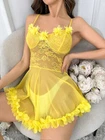 $ 3.06Sexy Lace Babydoll Lingerie Sheer Bodysuit Sleepwear Nightgown Gift for Women