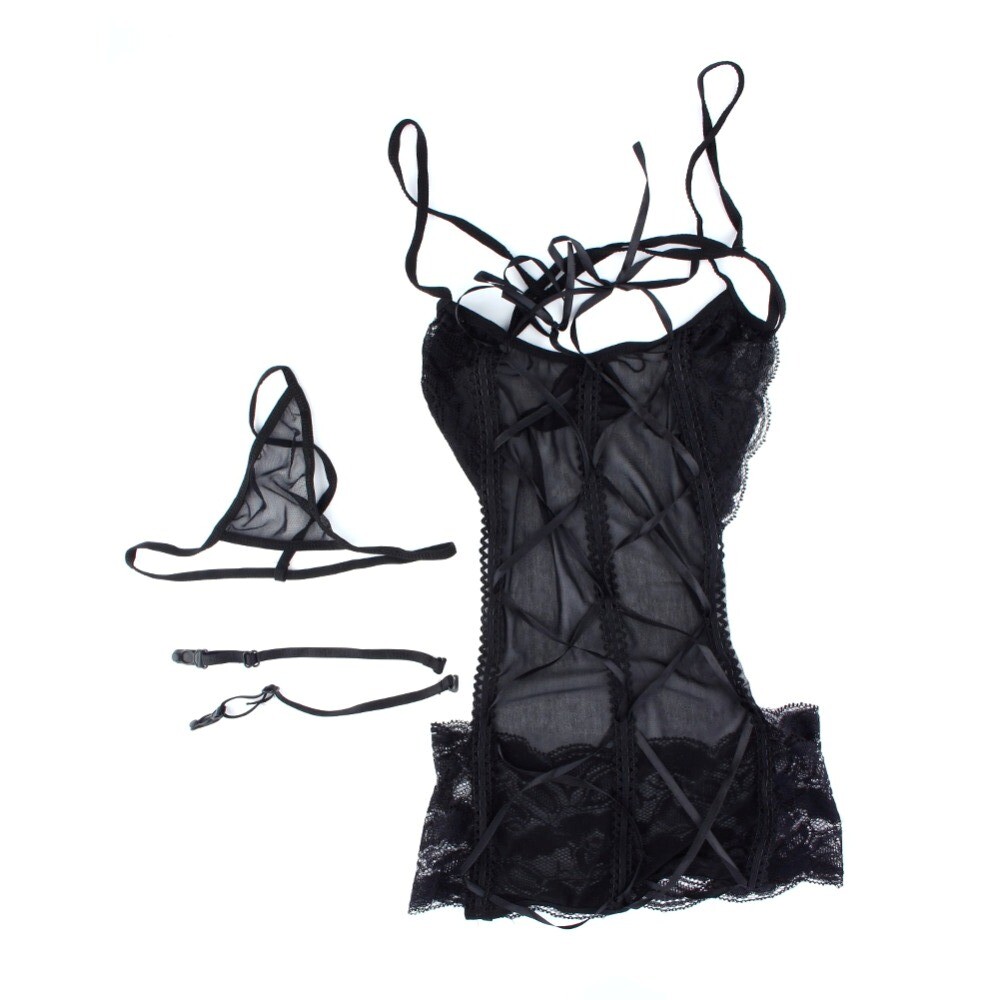 $ 4.23Sexy Mesh Babydoll Teddy Bodysuit - Women's Sheer Lingerie Nightgown