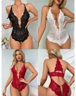 Specifications: Type: Body suit N eckli ne: V- N eck Depart ment: Wom en Style: Babydoll Season: Spri ng, Summer, Fall, Winter Fabric Type: Lace Size Type: Regular Feature: Belted, Lightweight Material: Lace & Polyester Color: Black / Red / White / Blue Size: M / L / XL Inimitably Sexy / Attractive / Charming / Fashion Great Gift Package Includes: 1x Lingerie