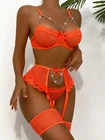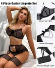 【Materiel】95% Polyester + 5% Spandex. Garter set lingerie for women is made of stretchy eyelash lace fabric and mesh fishnet. Lightweight and breathable material make it skin-friendly and comfortable to wear. 【Design】4pc lingerie set with underwire cups and chain strappy design, and mesh fishnet give you a look to a stunning start during your night. The adjustable strappy lingerie sets will show your curves beautifully in all the right places. 【Style】This matching bra and panty set with belt can enhance femininity and outline sexy breast lines, shows your curve beautifully,making you more charming. 【Occasion】Sexy fishnet lingerie for women is perfect for Halloween, Christmas, Wedding Night, Honeymoon, Valentine's Day Gifts, Anniversary gifts, Boudoir Shoot, Bachelorette Party. 【Package】1 x underwire bra + 1 x lining thong + 1x tummy control garter belt + 1 x pair of thigh cuffs. One lingerie set, two ways to wear: you can put on the 4 piece garter lingerie set to be the hottes t woman, or remove the garter belt to wear it as sexy bra and panty set.