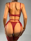 $ 3.17Sexy Lace Teddy Bodysuit with Garter Belt Bra and Panty Set for Women