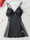 Description: This sleepwear lingerie featuring with V-neck and lace trim with a flowy attractive bottom. The design of V-neck and side mesh design help you to show your beautiful lines, makes you nobler in the night. Convenient adjustable straps comfortable to wear this wo.men lace lounge dress nightgown. This chemise is versatile able to be worn as a slip under your clothes or wear to bed as a nightgown, lingerie for women, sexy sleep dress. Size: S/M/L/XL/2XL Color:Black Package Content: kage Content:1 x Women's Sexy Lingerie Dress(no panty) or 1 x Women's Sexy Thong