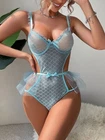 Feature: 95% Polyester, 5% Spandex Hand Wash Only This is a mesh sheer bodysuit, metarial is soft and stretchy. mesh teddy with adjustable strap, convenience and comfort of wearing Essential sexy lingerie in your wardrobe. The unique line cut-out cross design in the chest makes you more personalized and sexy. Waist elastic line can create a plump figure with thin waist and big buttocks You can wear this sexy bodysuit at home as a nightwear or outside pair with a fitted jeans or skirt Best gift for yourself or friends. Perfect for wedding night,honeymoon,Valentine's Day,Christmas,Halloween Package Included: 1*Women Sexy Teddy Bodysuit