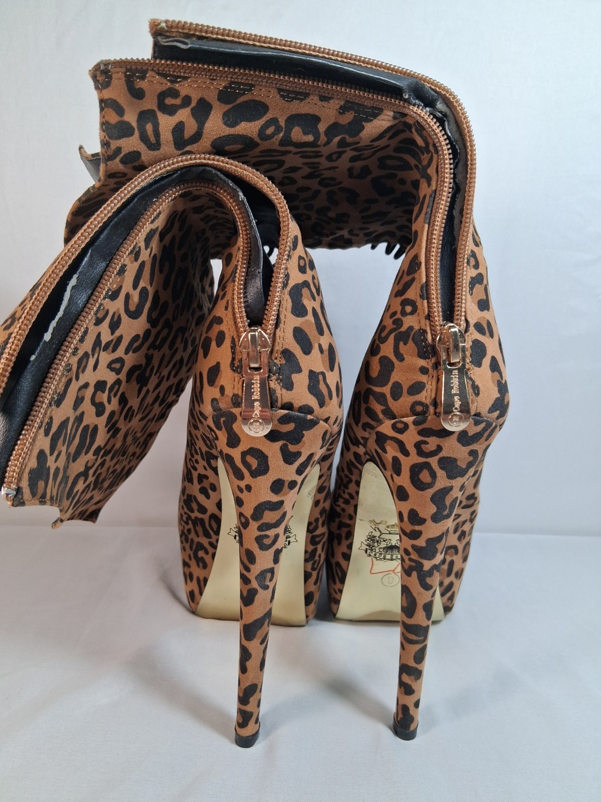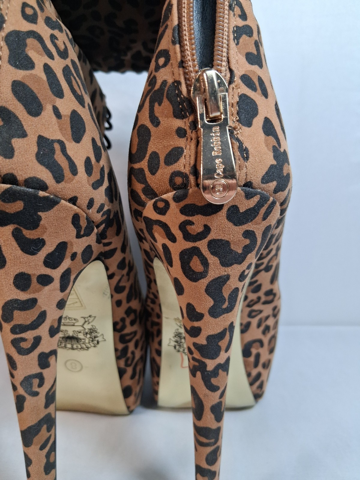 These Cape Robbin leopard print heels in size 8 are a stunning addition to any woman's shoe collection. With a high stiletto heel, suede upper material, and ultra high heel height, these shoes are perfect for clubwear occasions. The bold leopard print adds a touch of sexiness to any outfit, making them a versatile and stylish choice for any fashion-forward woman. Made in China, these heels are in great shape and guaranteed to turn heads wherever you go.