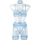 This lingerie set is absolutely stunning! The ultra-soft lace feels luxurious against the skin, and the sexy design with the halter V-neck and bow details adds a touch of elegance. The sheer teddy bodysuit paired with the garter belts makes it perfect for special nights—whether it's a romantic evening or just feeling extra confident. The fit is flattering, and the light blue color is so feminine and pretty. Highly recommend for anyone looking to spice up their lingerie collection!