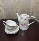 Shabby Chic Tea Ware 5 Piece Boxed Set Roses, Floral Pattern Crafted from high-quality porcelain materials, includes a teapot, two cups and saucers.