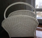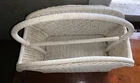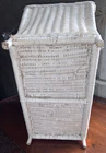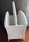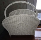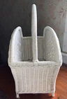Wicker Magazine Holder. Great for shabby farmhouse decor. Some chippy paint, including on legs. See photos as they are part of the description. Condition is "Used". Shipped with USPS Priority Mail.