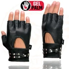 Description Women's Premium leather Palm Fingerless Glove With Studded Strap Detailing and pull tab on finger for easy removable Premium Full Grain Cowhide Leather Padded Palm Rivet Detailing Around the Wrist