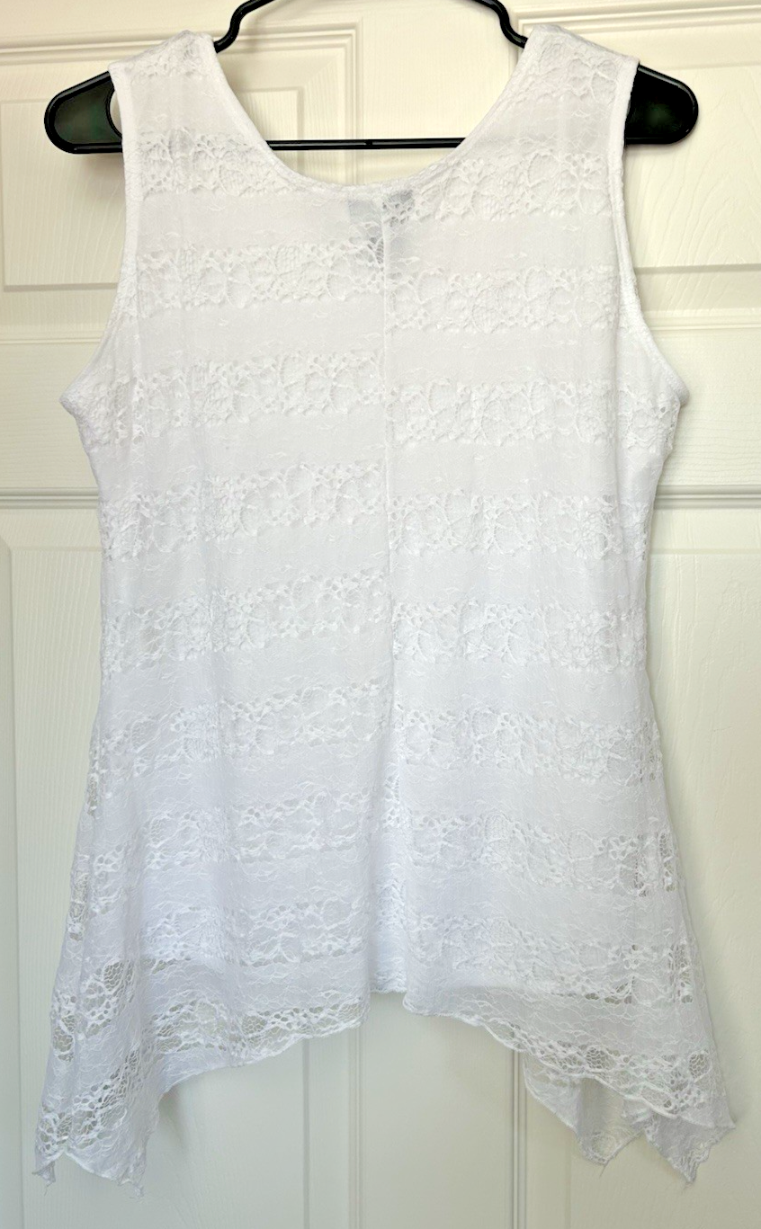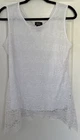 The Shannon Ford New York Women White Sleeveless Top in size L is a stylish and versatile addition to any woman's wardrobe. Made from a comfortable blend of nylon, spandex, and polyester, this top features a round neckline and pullover closure.The white color and sleeveless design make it perfect for the warmer seasons of summer, fall, and spring. Machine washable for easy care, this top is a must-have for women looking for a basic yet chic clothing piece.