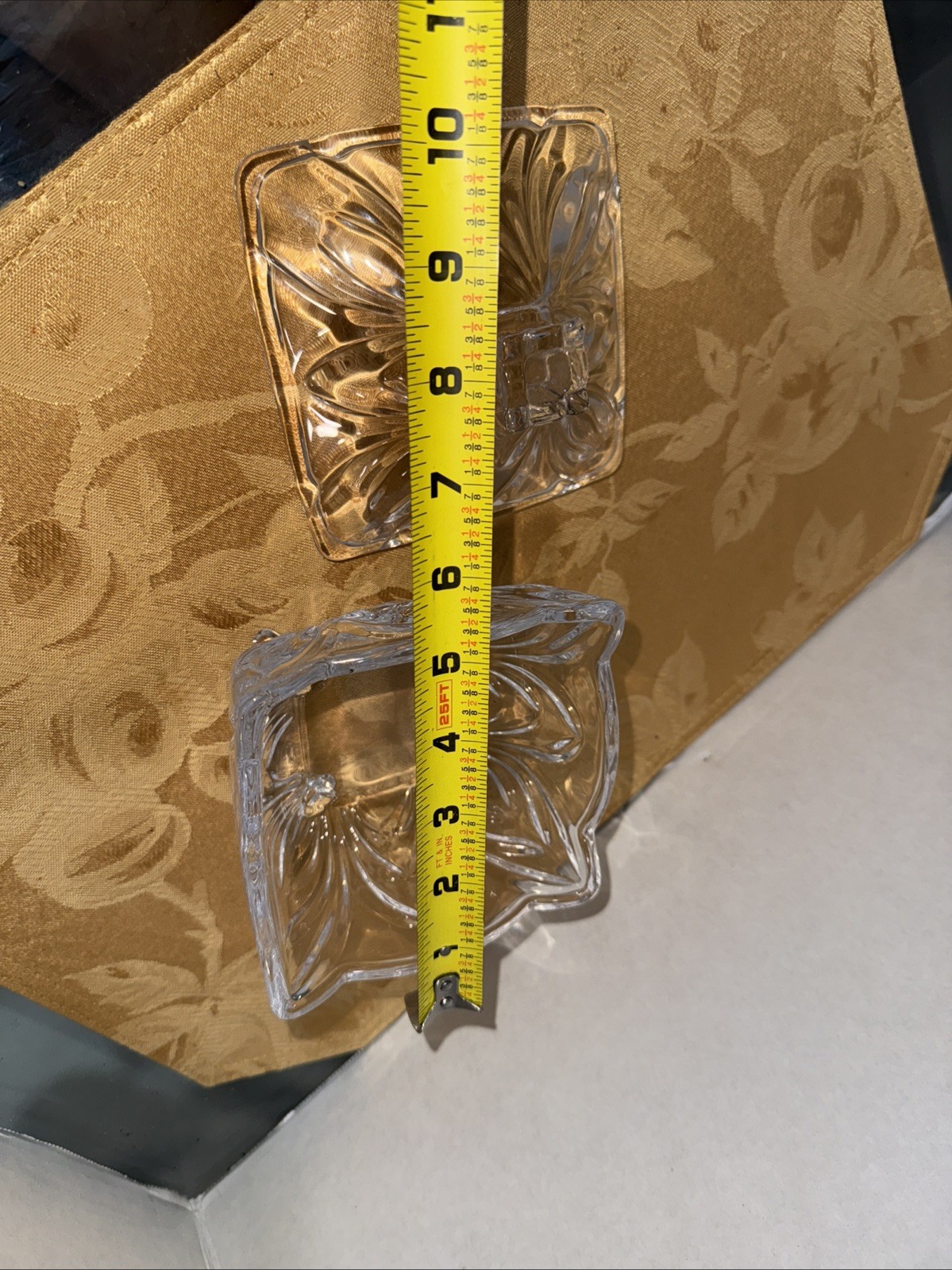 Elevate your home decor with this handcrafted Shannon Godinger crystal candy dish, complete with a glossy finish that reflects light beautifully. Its Bohemian glass design exudes an air of elegance, making it a stunning addition to any display cabinet or centerpieces for special occasions. The dish features a single compartment, perfect for showcasing a variety of sweets or even as a standalone statement piece. Crafted from high-quality crystal, this piece is a testament to vintage charm with its timeless clear color and design. The dish stands on four feet, ensuring stability and ease of use. Whether it's for serving or as part of your crystal collection, this Shannon Godinger dish is a blend of functionality and style. Please refer to the provided pictures for a detailed view of its dimensions and craftsmanship. Look at the pictures before making your purchase
