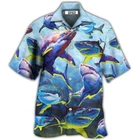 Shark Family Blue And Yellow Light Hawaiian Shirt