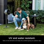 Description Details: Meet the ultra-powerful Shark FlexBreeze Outdoor & Indoor Fan with InstaCool misting attachment. Cordless & corded, it also transforms from pedestal & tabletop with 70 ft range and 24-hour runtime. The InstaCool misting attachment easily connects to your hose and rapidly reduces temperatures to feel up to 10 degrees cooler. Incredibly quiet, even at high speed. Rain and UV resistance for outdoor use. OUTDOOR TOUGH, INDOOR SLEEK: Outdoor tough—rain-resistant and durable. Take it to sporting events, cookouts, the park, or the beach, and use it outside with no stress. Indoor sleek—a stylish addition to your home. Own your oasis, indoors or out. INSTACOOL MISTING ATTACHMENT: Enjoy immediate, on-demand cooling mist— easily connects to your hose and rapidly reduces temperatures to feel up to 10 degrees cooler*. *Based on temperature reduction in controlled environment at 84 degrees, 9 feet from fan and 50% RH. Performance will vary with environmental factors. 24-HOUR RUNTIME: Get 24 hours of runtime* from a single battery charge and take the portable fan places you never thought possible. Run out of battery? Just plug it in and keep the power going while recharging. *Based on fan speed 1, No oscillation CORDED TO CORDLESS: Plug in this ultra-powerful fan for endless power, or for more freedom, go cordless. TRANSFORMS TO TABLETOP: Switch from pedestal to tabletop mode in seconds with the press of a button so you can grab it and go—truly take your cool-down anywhere. BRING THE BOOST: In BreezeBoost mode, you can feel the breeze from over 70 feet away—fend off heat outside, or bring amazing air circulation inside. VARIABLE SPEEDS, OSCILLATION, AND MORE: 5 fan speeds, 180 degrees of side-to-side oscillation, 55-degree up-and-down tilt. Lightweight design at only 13 lbs., with a misting attachment and even a remote that you can store on the fan. DURABLE: UV resistance and a water-resistant design mean it's safe to use outside, rain or shine. ULTRA-QUIET: incredibly quiet fan even at the highest speed, perfect for working from home or sleeping. WHAT’S INCLUDED: FlexBreeze Fan Head, Pedestal Pole, Pedestal Base, Charging Cable, Remote (Lithium-Ion Button Battery Included), Misting Attachment. Country of Origin: China Specifications Item # 43767483 Assembled Dimensions 13.8 in. W X 13.8 in. L X 13.8 in. D X 37 in. H Material Plastic Color Grey Product Features Adjustable Speed, Oscillating Type Floor Use Home Use Warranty 2 year Limited Manufacturer Model Number FA222