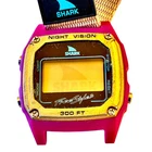 Shark FreeStyle Night Vision Digital Watch 300 FT Water Resistant Ladies FOR PARTS OR REPAIR ONLY Currently not working - the pin and 6 tiny screws that were removed are in the tiny cup. The owner of the watch said it only needs a fresh battery. I was not experienced enough to get the watch open to replace the battery - thus, I do not honestly know if the watch would run with a new battery. Thus, listing as for parts or repair. FOR PARTS OR REPAIR ONLY - as is