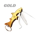 Shark Keychain Pocket Knife Bottle Opener Multifunctional Toothpick Outdoor Camping FAST FREE SIPPING Brand new and high quality Multifunctional Toothpick Knife Keychain – a powerhouse of functionality, convenience, and style, compactly designed for everyday carry Colors : GOLD/BRONZE, SILVER, IRIDIUM Package Included: 1* Knife Tool Material: Stainless steel made blade, sharp and solid. Handy to use, easy to folding and unfolding. Meet most of daily needs about knife - open carton boxes, cut small rope, etc. Creative design Shark shape folding knife, perfect for daily life . Unique Fish style design, pocket size. Features 100% Brand new Mini Fish shaped folding knife pocket knife, anti-wear, anti-rust, nice quality and real sharp Best for your pocket and backpack. Compact and easy to carry, sharp stainless steel blade, curve belly great for cutting, slicing, peeling, etc. Practical knife cutter peeler EDC tools, multi-use portable knife, fruit knife, outdoor survival knives, emergency defensive knife, camping knife, etc. Apply to various usage: Package/Box/Letter opening, camping, fishing, peeler, climbing, travelling, utility blade. GREAT GIFT IDEA PERFECT FRIENDSHIP GIFT - Great as a Friendship Gift, Father's Day gift, graduation gift, wedding or groomsman gift, golf tournaments, corporate gifts, etc. Specifications GMS knife Blade Material: 430 steel Handle Material: Aluminum/Bronze Full Length: 4.13''+ Inch Blade Length: 1.57'' Inch Blade Width: 1 0mm Blade Thickness: 2mm Package Included 1 x Folding Knife + Jewelry Pouch (As pictured) Please visit my store for more items https://www.ebay.com/str/ thegoodmanservice Payment: We accept PayPal payment only! Payments must be made within 2 days after you have won and committed to item purchase. We reserve the right to cancel the transaction if timely payment is not received. We ship to any VALID address, please add your shipping address into your PayPal account prior to make purchase We DO NOT change delivery address after payment is made or while en route to original . If your shipping address is not the one listed on your payment, we can help you to cancel the order first and place a new order with correct address. Serious buyer only. Non-paying bidder will be reported to ebay and ebay unpaid strike will be followed. Return Policy: Return must be requested within 3 days of item delivery. Buyer is responsible for return shipping. Item MUST be in the same NEW condition and UNOPENED packaging 20% of original selling price will be charged for returned item as reinstock fee. We DO NOT waive restock fee under any circumstances. Any type of mail fraud will lead to legal ramification. Refund will be processed after we receive the returned item and verify its status. We reserve the right to charge extra fees if item returned is damaged or intentionally abused. We reserve the right of final explanation of the return policy Feedback -At GoodMan Service we strive for 100% customer satisfaction. If you are not satisfied do not leave negative feedback in retaliation for a defective product or something you were not expecting. Please just contact us through Ebay messages and we will quickly resolve the matter. Also always remember to leave 5 stars for each of the 4 categories when leaving feedback.