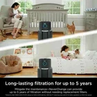 Shark Never Change Air Purifier MAX, 5-Year HEPA Filter, 1200 Sq. ft. Charcoal🔷 Open Box: This item is have been opened for inspection, testing, or display purposes. The item has been thoroughly checked to ensure it is fully functional and works like new About this item NEVER CHANGE FILTRATION: HEPA filtration that wont need replacement*. Debris Defense filter protects HEPA layers ,*for up to 5 years, Tested to GB/T18801-2015 P.CCM, based on 50% CADR declined, 300 SQFT, and 12 hrs daily operation on MAX fan speed $300+ IN FILTER REPLACEMENT SAVINGS: With Never Change filtration, you wont need replacement filters for up to 5 years. *Vs.cost of replacing filters on a competitor unit over 5-year period in 300 square foot space DEBRIS DEFENSE PROTECTION: Pulls in large particles like hair, dust, and dander, preventing buildup on your HEPA filter and maximizing performance. Easily remove the screens and vacuum, wipe, or rinse it clean in seconds WHOLE-HOME COVERAGE: Purify extra-large areas up to 1200 sq. ft. in just one hour. Perfect for multiple rooms, large bedrooms and living rooms, basements, and more. Based on AHAM AC-1, at one air change per hour EXCEEDS HEPA STANDARDS: Anti-Allergen HEPA filter captures more micro-pollutants than HEPA standards require, trapping 99.98% of large, small, & micro-sized particles (based on EST-RP-CC007.3, 0.10.2 microns). *Allergen refers to non-living matter AUTOMATICALLY ADJUSTS: Clean Sense IQ tracks air quality and constantly adjusts power to maintain clean air in your home. (Measures three particle sizes: PM1, PM2.5, and PM10). Results & updates are displayed in real-time on an LED screen FOR A GOOD NIGHT'S SLEEP: Ultra-quiet performance, with dimmable lights for minimal sleep interruption WHATS INCLUDED: Shark Never change Air Purifier MAX, Debris Defense Washable Filter & Never change HEPA filter