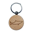 Shark Outline Engraved Wood Round Keychain Tag Charm