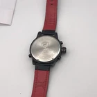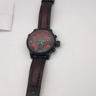 Requiem Shark Dual Time Zone Analog Date Day Men's Red/Black Leather Sport Wrist Watch A classic SHARK men’s military sports watch designed and engineered with the latest state of the art time keeping technology to keep you on time and ahead of the pack all day every day. A perfect companion for the modern day urban explorer with a passion for craftsmanship and the spirit for adventure. Auto Day, Auto Date, Waterproof Quartz movement Alarm LED Complete Calendar, Multiple Time Zone, , 6 hand design , Dual Time Zone Black Dashboard , full Leather Band , Full Red sunray background dial Comfortable and stylish genuine leather bracelet 3 Small dials to show date, day and 24 hours Oversized, easy-to-hold crown with SHARK embossed feature accent color detailing . SPECIFICATIONS: Series:Requiem Shark Collection:Racing SHARK-Sports Item Type: Wrist watch Movement:Japan quartz technology Water Resistance: 3 ATM/30mtrs Water resistant Dial Display: Analog, 6 Hands, 3 Dial Eyes Dial Window Material Type: Mineral Glass Dial Material Type: Stainless Steel Face Diameter:50 mm Band Type:Leather Band Width:22 mm Band Length: 19.5 cm Clasp Type: Buckle Watch Case: Alloy Model Number: SW-207 Preowned Needs new battery