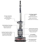 The Shark UV900 Lift-Away Upright Vacuum Cleaner in Navy/Silver offers powerful suction and convenient features like cord rewind and pet hair removal. With a HEPA filter for clean air and a bagless design for easy maintenance, this model is lightweight at 13.98 lbs and comes with a crevice tool for targeted cleaning. The rotating brushes and lift-off design make it easy to clean hard-to-reach areas, making it a versatile choice for household cleaning needs. This item has been refurbished by Shark.